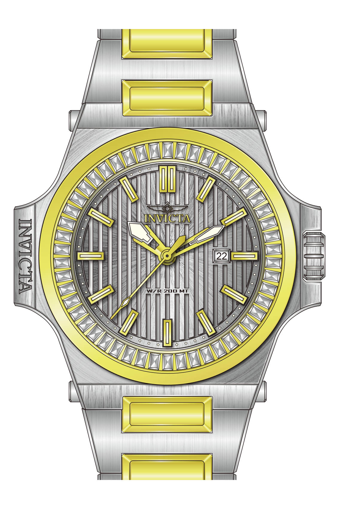 ["Akula","Band_Size_32MM","Crystal","Gold","I43385","invicta_itg","Men","PF19179","Products_2022","Quartz","Stainless Steel","Stationary","White"]