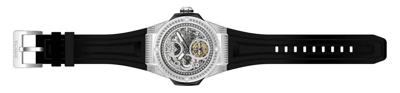 Band Material: Silicone, Band Tone: Black, Band Size [mm]: 32, Band Length [mm]: 230, Buckle Type: Buckle . Please note that bands do not ship with spring bars or T bars. If you need these parts, please add them to your cart with the corresponding part sku.