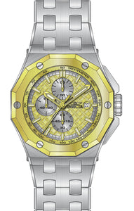 Band Material: Stainless Steel, Band Tone: Steel, Band Width: 28MM, Band Length: 210MM, Crown Type: Push, Case Material: Stainless Steel, Case Tone: Gold,Steel, Case Size [mm]: 48.00, Case Back: Solid, Material of Hands: Metal, Color of Hands: Gold,Luminous, Crystal Type: Mineral, Bezel Material: Stainless Steel, Dial Material: Metal, Dial Color: Silver,Gold, Dial Pattern: Textured Pattern .Purchasing these parts and having a non-authorized repair center open your watch voids all manufacturing warranties. Invicta cannot guarantee the quality standards of an altered timepiece, the standard 3-year limited warranty on Invicta timepieces shall be invalid if the timepiece is serviced at any time by an unauthorized repair center. This includes battery replacements, which must be done at an Invicta authorized repair center in order to maintain the eligibility of the warranty. Please follow the link below to learn more about Invicta's warranty.https://cdn.invictawatch.com/www/files/invicta-warranty-2018.pdf