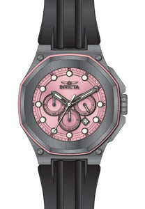 Band Material: Silicone, Band Tone: Black, Band Width: 30MM, Band Length: 200MM, Crown Type: Push, Case Material: Stainless Steel,Aluminum, Case Tone: Pink,Titanium, Case Size [mm]: 50.0, Case Back: Solid screwed, Material of Hands: Metal, Color of Hands: White,Luminous,Gunmetal, Crystal Type: Mineral, Bezel Material: Stainless Steel,Aluminum, Dial Material: Metal, Dial Color: Pink, Dial Pattern: Sun-ray Finish .Purchasing these parts and having a non-authorized repair center open your watch voids all manufacturing warranties. Invicta cannot guarantee the quality standards of an altered timepiece, the standard 3-year limited warranty on Invicta timepieces shall be invalid if the timepiece is serviced at any time by an unauthorized repair center. This includes battery replacements, which must be done at an Invicta authorized repair center in order to maintain the eligibility of the warranty. Please follow the link below to learn more about Invicta's warranty.https://cdn.invictawatch.com/www/files/invicta-warranty-2018.pdf
