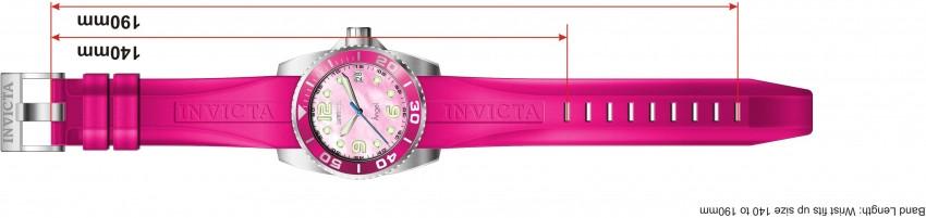 Individual Spare PARTS For Lady Invicta Angel 0482, Band Material Polyurethane, Band Color Pink, Band Width 20 MM, Band Length 190 MM, Buckle Type Regular, Clasp Type Purchasing these parts and having a non-authorized repair center open your watch voids all manufacturing warranties. Invicta cannot guarantee the quality standards of an altered timepiece, the standard 3-year limited warranty on Invicta timepieces shall be invalid if the timepiece is serviced at any time by an unauthorized repair center. This includes battery replacements, which must be done at an Invicta authorized repair center in order to maintain the eligibility of the warranty. Please follow the link below to learn more about Invicta's warranty.https://cdn.invictawatch.com/www/files/invicta-warranty-2018.pdf