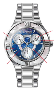 INVICTA Angel Lady 36mm Stainless Steel + Resin Silver Blue+Silver dial VH68 Quartz , Band Material: Stainless Steel, Band Tone: Steel, Band Size [mm]: 18, Band Length [mm]: 175, Buckle Type: Fold over push button , Crown Type : Push, Case Material : Stainless Steel,Resin, Case Tone : Silver, Case Size (mm) : 36, Case Back : Solid, Material of Hands : Metal, Color of Hands : Silver, Crystal Type : Flame Fusion, Bezel Material : Stainless Steel, Dial Material : Mother of Pearl, Dial Color : Blue,Silver .Purchasing these parts and having a non-authorized repair center open your watch voids all manufacturing warranties. Invicta cannot guarantee the quality standards of an altered timepiece, the standard 3-year limited warranty on Invicta timepieces shall be invalid if the timepiece is serviced at any time by an unauthorized repair center. This includes battery replacements, which must be done at an Invicta authorized repair center in order to maintain the eligibility of the warranty. Please follow the link below to learn more about Invicta's warranty.https://cdn.invictawatch.com/www/files/invicta-warranty-2018.pdf