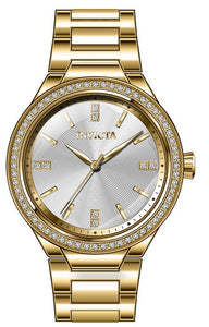 Band Material: Stainless Steel, Band Tone: Gold, Band Width: 19MM, Band Length: 190MM, Crown Type: Push, Case Material: Stainless Steel, Case Tone: Gold, Case Size [mm]: 36, Case Back: Solid, Material of Hands: Metal, Color of Hands: Gold, Crystal Type: Flame Fusion, Bezel Material: Stainless Steel,Crystal, Dial Material: Metal, Dial Color: Silver .Purchasing these parts and having a non-authorized repair center open your watch voids all manufacturing warranties. Invicta cannot guarantee the quality standards of an altered timepiece, the standard 3-year limited warranty on Invicta timepieces shall be invalid if the timepiece is serviced at any time by an unauthorized repair center. This includes battery replacements, which must be done at an Invicta authorized repair center in order to maintain the eligibility of the warranty. Please follow the link below to learn more about Invicta's warranty.https://cdn.invictawatch.com/www/files/invicta-warranty-2018.pdf
