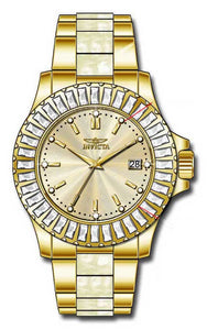 Band Material: Stainless Steel,Tortoise, Band Tone: Gold,Pearl, Band Width: 20MM, Band Length: 170MM, Crown Type: Push, Case Material: Stainless Steel, Case Tone: Gold, Case Size [mm]: 38, Case Back: Solid, Material of Hands: Metal, Color of Hands: Gold, Crystal Type: Flame Fusion, Bezel Material: Stainless Steel,Crystal, Dial Material: Metal, Dial Color: Gold, Dial Pattern: Textured Pattern .Purchasing these parts and having a non-authorized repair center open your watch voids all manufacturing warranties. Invicta cannot guarantee the quality standards of an altered timepiece, the standard 3-year limited warranty on Invicta timepieces shall be invalid if the timepiece is serviced at any time by an unauthorized repair center. This includes battery replacements, which must be done at an Invicta authorized repair center in order to maintain the eligibility of the warranty. Please follow the link below to learn more about Invicta's warranty.https://cdn.invictawatch.com/www/files/invicta-warranty-2018.pdf