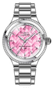Band Material: Stainless Steel, Band Tone: Steel, Band Width: 18MM, Band Length: 173MM, Crown Type: Push, Case Material: Stainless Steel, Case Tone: Silver, Case Size [mm]: 36, Case Back: Solid, Material of Hands: Metal, Color of Hands: Silver, Crystal Type: Flame Fusion, Bezel Material: Stainless Steel, Dial Material: Mother of Pearl, Dial Color: Pink, Dial Pattern: None .Purchasing these parts and having a non-authorized repair center open your watch voids all manufacturing warranties. Invicta cannot guarantee the quality standards of an altered timepiece, the standard 3-year limited warranty on Invicta timepieces shall be invalid if the timepiece is serviced at any time by an unauthorized repair center. This includes battery replacements, which must be done at an Invicta authorized repair center in order to maintain the eligibility of the warranty. Please follow the link below to learn more about Invicta's warranty.https://cdn.invictawatch.com/www/files/invicta-warranty-2018.pdf