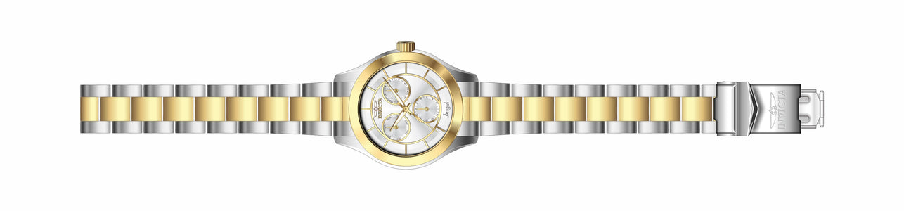 INVICTA Angel Lady 40mm Stainless Steel Gold + Steel Silver dial VH68 Quartz , Band Material: Stainless Steel, Band Tone: Steel,Gold, Band Size [mm]: 18, Band Length [mm]: 205, Buckle Type: Fold over safety , Crown Type : Push, Case Material : Stainless Steel, Case Tone : Gold,Steel, Case Size (mm) : 40, Case Back : Solid, Material of Hands : Metal, Color of Hands : Gold,Luminous, Crystal Type : Flame Fusion, Bezel Material : Stainless Steel, Dial Material : Metal, Dial Color : Silver, Dial Pattern : Sun-ray Finish .Purchasing these parts and having a non-authorized repair center open your watch voids all manufacturing warranties. Invicta cannot guarantee the quality standards of an altered timepiece, the standard 3-year limited warranty on Invicta timepieces shall be invalid if the timepiece is serviced at any time by an unauthorized repair center. This includes battery replacements, which must be done at an Invicta authorized repair center in order to maintain the eligibility of the warranty. Please follow the link below to learn more about Invicta's warranty.https://cdn.invictawatch.com/www/files/invicta-warranty-2018.pdf