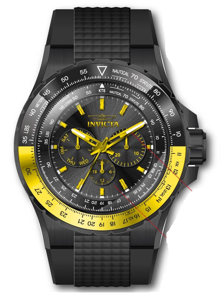 ["Aluminum","Aviator","Band_Size_32MM","Black","I39277","invicta_itg","Men","PF14384","Products_2021","Quartz","Stainless Steel","Uni-directional","Yellow"]