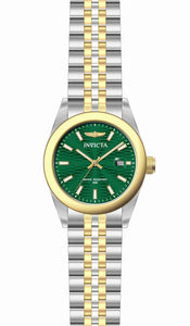INVICTA Aviator Lady 38mm Stainless Steel Gold + Steel Green dial PC32 Quartz , Band Material: Stainless Steel, Band Tone: Steel,Gold, Band Size [mm]: 20, Band Length [mm]: 190, Buckle Type: Fold over , Crown Type : Push, Case Material : Stainless Steel, Case Tone : Gold,Steel, Case Size (mm) : 38, Case Back : Solid, Material of Hands : Metal, Color of Hands : Gold,Luminous, Crystal Type : Mineral, Bezel Material : Stainless Steel, Dial Material : Metal, Dial Color : Green, Dial Pattern : Sun-ray Finish .Purchasing these parts and having a non-authorized repair center open your watch voids all manufacturing warranties. Invicta cannot guarantee the quality standards of an altered timepiece, the standard 3-year limited warranty on Invicta timepieces shall be invalid if the timepiece is serviced at any time by an unauthorized repair center. This includes battery replacements, which must be done at an Invicta authorized repair center in order to maintain the eligibility of the warranty. Please follow the link below to learn more about Invicta's warranty.https://cdn.invictawatch.com/www/files/invicta-warranty-2018.pdf