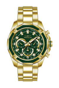 INVICTA Aviator Men 48mm Stainless Steel Gold Green dial VD54 Quartz , Band Material: Stainless Steel, Band Tone: Gold, Band Size [mm]: 24, Band Length [mm]: 195, Buckle Type: Fold over safety , Crown Type : Push, Case Material : Stainless Steel, Case Tone : Gold, Case Size (mm) : 48, Case Back : Solid, Material of Hands : Metal, Color of Hands : Gold, Crystal Type : Flame Fusion, Bezel Material : Stainless Steel,Glass Fiber, Dial Material : Metal,Glass Fiber, Dial Color : Green, Dial Pattern : Textured Pattern .Purchasing these parts and having a non-authorized repair center open your watch voids all manufacturing warranties. Invicta cannot guarantee the quality standards of an altered timepiece, the standard 3-year limited warranty on Invicta timepieces shall be invalid if the timepiece is serviced at any time by an unauthorized repair center. This includes battery replacements, which must be done at an Invicta authorized repair center in order to maintain the eligibility of the warranty. Please follow the link below to learn more about Invicta's warranty.https://cdn.invictawatch.com/www/files/invicta-warranty-2018.pdf