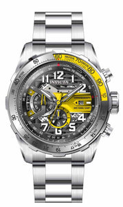 INVICTA Aviator Men 53mm Stainless Steel Silver Black+Yellow dial VD5F Quartz , Band Material: Stainless Steel, Band Tone: Steel, Band Size [mm]: 26, Band Length [mm]: 200, Buckle Type: Fold over safety , Crown Type : Push, Case Material : Stainless Steel, Case Tone : Silver, Case Size (mm) : 53, Case Back : Solid, Material of Hands : Metal, Color of Hands : White,Silver,Yellow, Crystal Type : Flame Fusion, Bezel Material : Stainless Steel, Dial Material : Metal, Dial Color : Black,Yellow .Purchasing these parts and having a non-authorized repair center open your watch voids all manufacturing warranties. Invicta cannot guarantee the quality standards of an altered timepiece, the standard 3-year limited warranty on Invicta timepieces shall be invalid if the timepiece is serviced at any time by an unauthorized repair center. This includes battery replacements, which must be done at an Invicta authorized repair center in order to maintain the eligibility of the warranty. Please follow the link below to learn more about Invicta's warranty.https://cdn.invictawatch.com/www/files/invicta-warranty-2018.pdf