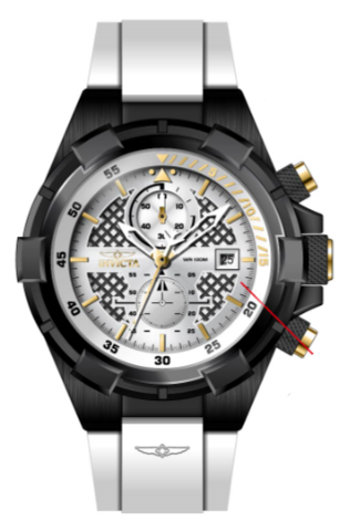 INVICTA Aviator Men 50.5mm Stainless Steel Black Silver+Gold dial VD51 Quartz , Band Material: Silicone, Band Tone: White, Band Size [mm]: 26, Band Length [mm]: 210, Buckle Type: Buckle , Crown Type : Push, Case Material : Stainless Steel, Case Tone : Black, Case Size (mm) : 50.5, Case Back : Solid, Material of Hands : Metal, Color of Hands : White,Gold, Crystal Type : Flame Fusion, Bezel Material : Stainless Steel, Dial Material : Metal, Dial Color : Silver,Gold, Dial Pattern : Sun-ray Finish .Purchasing these parts and having a non-authorized repair center open your watch voids all manufacturing warranties. Invicta cannot guarantee the quality standards of an altered timepiece, the standard 3-year limited warranty on Invicta timepieces shall be invalid if the timepiece is serviced at any time by an unauthorized repair center. This includes battery replacements, which must be done at an Invicta authorized repair center in order to maintain the eligibility of the warranty. Please follow the link below to learn more about Invicta's warranty.https://cdn.invictawatch.com/www/files/invicta-warranty-2018.pdf