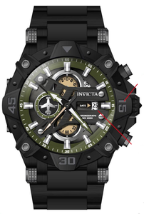 INVICTA Aviator Men 52mm Stainless Steel Black Black+Green+Ivory dial VD57 Quartz , Band Material: Stainless Steel, Band Tone: Black,Gunmetal, Band Size [mm]: 31, Band Length [mm]: 197, Buckle Type: Fold over safety , Crown Type : Push, Case Material : Stainless Steel, Case Tone : Black, Case Size (mm) : 52, Case Back : Solid, Material of Hands : Metal, Color of Hands : Black,White,Ivory, Crystal Type : Flame Fusion, Bezel Material : Stainless Steel, Dial Material : Metal, Dial Color : Black,Green,Ivory, Dial Pattern : Sun-ray Finish .Purchasing these parts and having a non-authorized repair center open your watch voids all manufacturing warranties. Invicta cannot guarantee the quality standards of an altered timepiece, the standard 3-year limited warranty on Invicta timepieces shall be invalid if the timepiece is serviced at any time by an unauthorized repair center. This includes battery replacements, which must be done at an Invicta authorized repair center in order to maintain the eligibility of the warranty. Please follow the link below to learn more about Invicta's warranty.https://cdn.invictawatch.com/www/files/invicta-warranty-2018.pdf