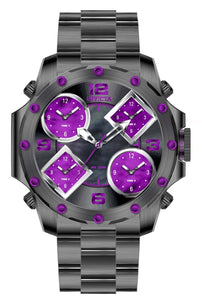 Band Material: Stainless Steel, Band Tone: Gunmetal, Band Width: 30MM, Band Length: 190MM, Crown Type: Push, Case Material: Stainless Steel, Case Tone: Gunmetal, Case Size [mm]: 58, Case Back: Solid, Material of Hands: Metal, Color of Hands: Silver,Purple,Gunmetal, Crystal Type: Flame Fusion, Bezel Material: Stainless Steel, Dial Material: Mother of Pearl, Dial Color: Purple,Gunmetal .Purchasing these parts and having a non-authorized repair center open your watch voids all manufacturing warranties. Invicta cannot guarantee the quality standards of an altered timepiece, the standard 3-year limited warranty on Invicta timepieces shall be invalid if the timepiece is serviced at any time by an unauthorized repair center. This includes battery replacements, which must be done at an Invicta authorized repair center in order to maintain the eligibility of the warranty. Please follow the link below to learn more about Invicta's warranty.https://cdn.invictawatch.com/www/files/invicta-warranty-2018.pdf