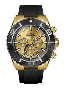 Band Material: Silicone, Band Tone: Black, Band Width: 26MM, Band Length: 225MM, Crown Type: Push, Case Material: Stainless Steel, Case Tone: Gold, Case Size [mm]: 49, Case Back: Solid, Material of Hands: Brass, Color of Hands: White,Gold,Luminous, Crystal Type: Mineral, Bezel Material: Stainless Steel, Dial Material: Metal, Dial Color: Gold, Dial Pattern: Sun-ray Finish .Purchasing these parts and having a non-authorized repair center open your watch voids all manufacturing warranties. Invicta cannot guarantee the quality standards of an altered timepiece, the standard 3-year limited warranty on Invicta timepieces shall be invalid if the timepiece is serviced at any time by an unauthorized repair center. This includes battery replacements, which must be done at an Invicta authorized repair center in order to maintain the eligibility of the warranty. Please follow the link below to learn more about Invicta's warranty.https://cdn.invictawatch.com/www/files/invicta-warranty-2018.pdf