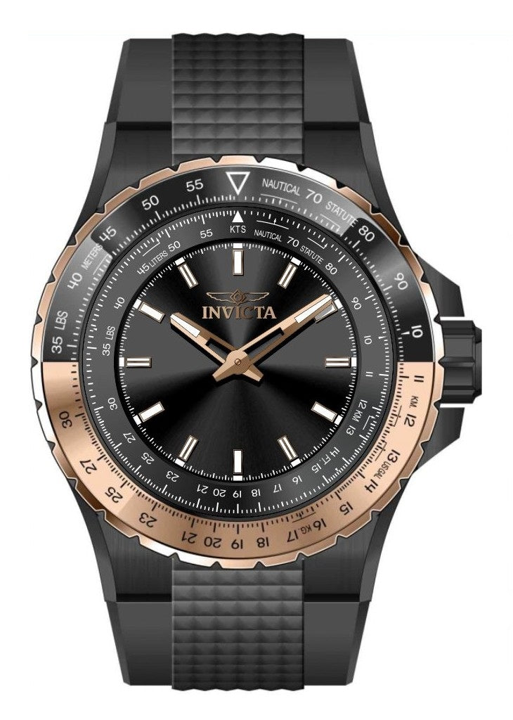 Band Material: Silicone, Band Tone: Black, Band Width: 32.5MM, Band Length: 225MM, Crown Type: Push, Case Material: Stainless Steel, Case Tone: Black, Case Size [mm]: 50, Case Back: Solid, Material of Hands: Brass, Color of Hands: Rose Gold,Luminous, Crystal Type: Mineral, Bezel Material: Stainless Steel,Aluminum, Dial Material: Brass, Dial Color: Black, Dial Pattern: Sun-ray Finish .Purchasing these parts and having a non-authorized repair center open your watch voids all manufacturing warranties. Invicta cannot guarantee the quality standards of an altered timepiece, the standard 3-year limited warranty on Invicta timepieces shall be invalid if the timepiece is serviced at any time by an unauthorized repair center. This includes battery replacements, which must be done at an Invicta authorized repair center in order to maintain the eligibility of the warranty. Please follow the link below to learn more about Invicta's warranty.https://cdn.invictawatch.com/www/files/invicta-warranty-2018.pdf