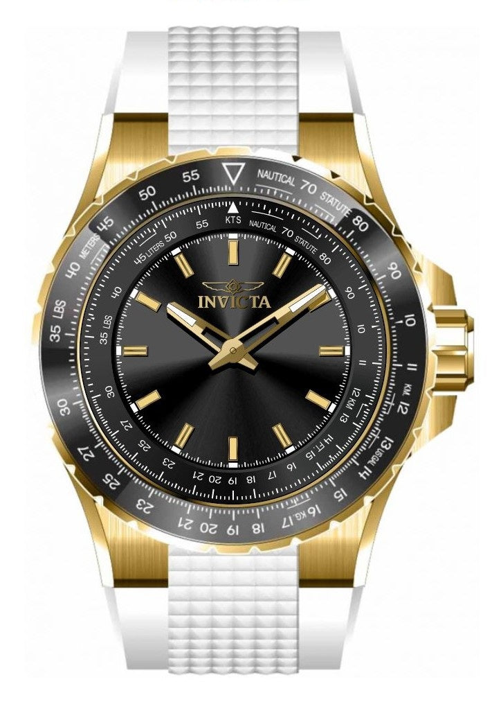 Band Material: Silicone, Band Tone: White, Band Width: 32.5MM, Band Length: 225MM, Crown Type: Push, Case Material: Stainless Steel, Case Tone: Gold, Case Size [mm]: 50, Case Back: Solid, Material of Hands: Brass, Color of Hands: Gold,Luminous, Crystal Type: Mineral, Bezel Material: Stainless Steel,Aluminum, Dial Material: Brass, Dial Color: Black, Dial Pattern: Sun-ray Finish .Purchasing these parts and having a non-authorized repair center open your watch voids all manufacturing warranties. Invicta cannot guarantee the quality standards of an altered timepiece, the standard 3-year limited warranty on Invicta timepieces shall be invalid if the timepiece is serviced at any time by an unauthorized repair center. This includes battery replacements, which must be done at an Invicta authorized repair center in order to maintain the eligibility of the warranty. Please follow the link below to learn more about Invicta's warranty.https://cdn.invictawatch.com/www/files/invicta-warranty-2018.pdf