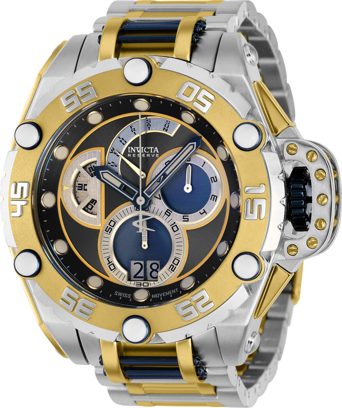 Band Material: Stainless Steel, Band Tone: Dark Blue, Gold, Steel, Band Width: 26.0MM, Band Length: 210MM, Buckle Type: Fold over safety, Clasp Type: Deployment, Safety, Please note that bands do not ship with spring bars or T bars. If you need these parts, please add them to your cart with the corresponding part sku.
