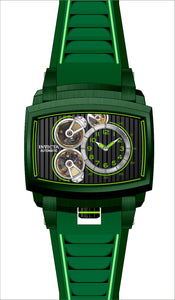 Band Material: Silicone, Band Tone: Green, Band Size [mm]: 26, Band Length [mm]: 220, Buckle Type: Buckle . Please note that bands do not ship with spring bars or T bars. If you need these parts, please add them to your cart with the corresponding part sku.