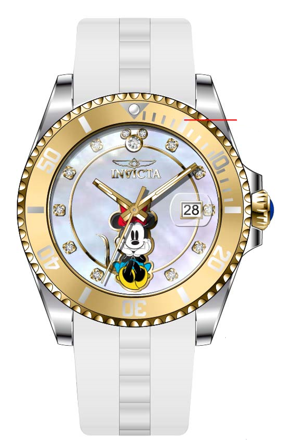 ["Band_Size_20MM","Disney Limited Edition","Gold","I41293","invicta_itg","Lady","Minnie Mouse","PF17984","Products_2021","Quartz","Silver","Stainless Steel","Uni-directional","White"]