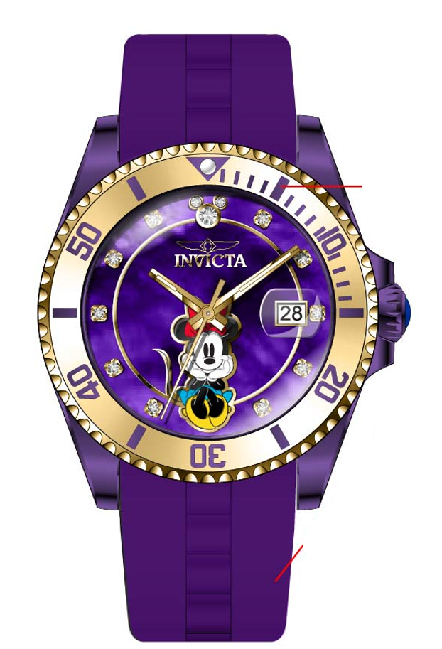["Band_Size_20MM","Disney Limited Edition","Gold","I41294","invicta_itg","Lady","Minnie Mouse","PF17984","Products_2021","Purple","Quartz","Stainless Steel","Uni-directional","White"]