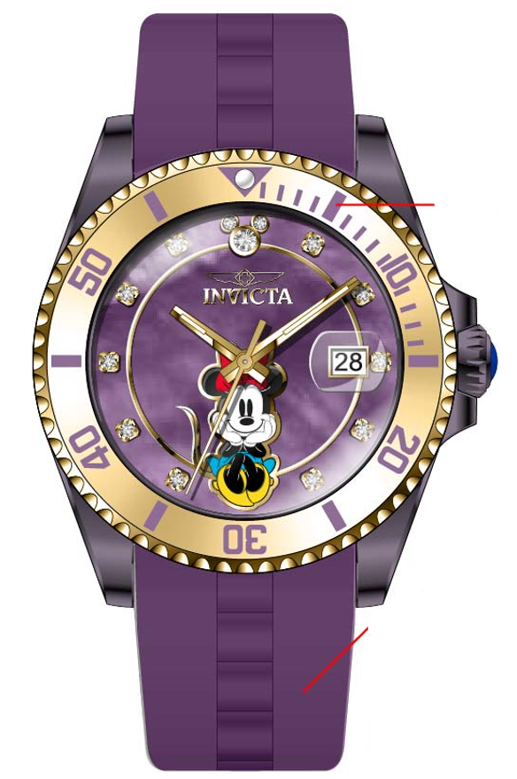 ["Band_Size_20MM","Disney Limited Edition","Gold","I41297","invicta_itg","Lady","Light Purple","Minnie Mouse","PF17984","Products_2021","Quartz","Stainless Steel","Uni-directional","White"]