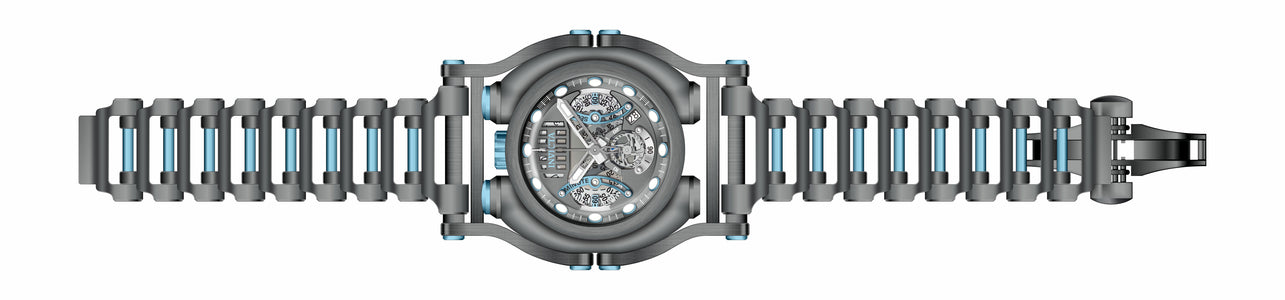Band Material: Stainless Steel, Band Tone: Gunmetal,Ice Blue, Band Size [mm]: 30, Band Length [mm]: 215, Buckle Type: Butterfly push button . Please note that bands do not ship with spring bars or T bars. If you need these parts, please add them to your cart with the corresponding part sku.