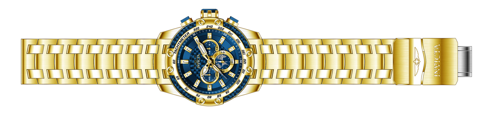 Band for Invicta Speedway 25945, Band Material: Stainless Steel, Band Tone: Gold, Band Size (mm): 26, Band Length (mm): 195, Buckle Type: Regular, Clasp Type: Regular. Please note that bands do not ship with spring bars or T bars. If you need these parts, please add them to your cart with the corresponding part sku.