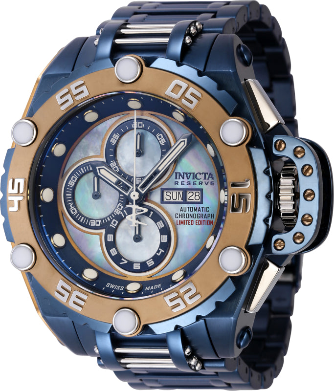 Band Material: Stainless Steel, Band Tone: Dark Blue, Steel, Band Width: 26.0MM, Band Length: 210MM, Buckle Type: Fold over safety, Clasp Type: Deployment, Safety, Please note that bands do not ship with spring bars or T bars. If you need these parts, please add them to your cart with the corresponding part sku.