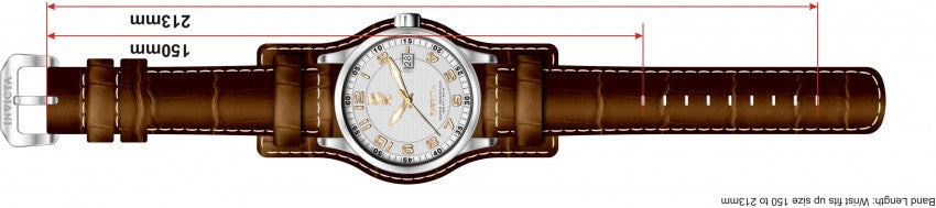 Band For Men Invicta I-Force 12552, Band Material Leather, Band Color Brown, Band Width 22 MM, Band Length 213 MM, Buckle Type Regular, Clasp Type Regular. Please note that bands do not ship with spring bars or T bars. If you need these parts, please add them to your cart with the corresponding part sku.