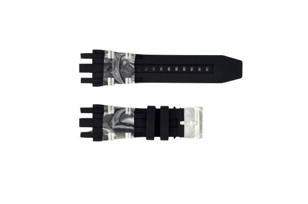 Band Material: Stainless Steel,Silicone, Band Tone: Steel,Black, Band Size [mm]: 31, Band Length [mm]: 210, Buckle Type: Buckle . Please note that bands do not ship with spring bars or T bars. If you need these parts, please add them to your cart with the corresponding part sku.