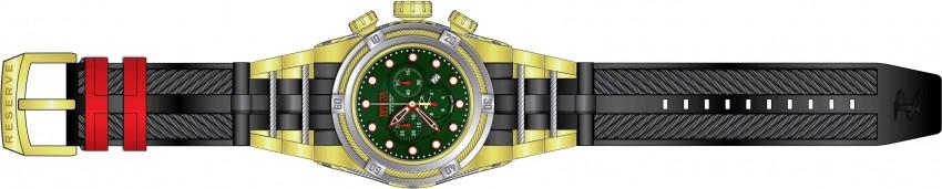 Individual Spare PARTS For Men Invicta Bolt 90014, Band Material Polyurethane, Stainless Steel, Band Color Black, Red, Gold, Steel, Band Width 36.8 MM, Band Length 210 MM, Buckle Type Regular, Clasp Type Regular, Crown Type Screw Down, Case Material Stainless Steel, Case Tone Gold, Steel, Case Size (mm) 53, Case Back Solid, Material of Hands Metal, Color of Hands Red, Luminous, Crystal Type Flame Fusion, Bezel Material Stainless Steel, Dial Material Enamel, Dial Color Green, Dial Pattern 0Purchasing these parts and having a non-authorized repair center open your watch voids all manufacturing warranties. Invicta cannot guarantee the quality standards of an altered timepiece, the standard 3-year limited warranty on Invicta timepieces shall be invalid if the timepiece is serviced at any time by an unauthorized repair center. This includes battery replacements, which must be done at an Invicta authorized repair center in order to maintain the eligibility of the warranty. Please follow the link below to learn more about Invicta's warranty.https://cdn.invictawatch.com/www/files/invicta-warranty-2018.pdf