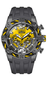 INVICTA Bolt Men 51mm Stainless Steel Gunmetal Yellow+Gunmetal dial VD53 Quartz , Band Material: Silicone, Band Tone: Grey, Band Size [mm]: 32, Band Length [mm]: 210, Buckle Type: Buckle , Crown Type : Push, Case Material : Stainless Steel, Case Tone : Gunmetal, Case Size (mm) : 51, Case Back : Solid, Material of Hands : Metal, Color of Hands : White,Silver,Yellow, Crystal Type : Flame Fusion, Bezel Material : Stainless Steel,Cable, Dial Material : Metal, Dial Color : Yellow,Gunmetal, Dial Pattern : Sun-ray Finish .Purchasing these parts and having a non-authorized repair center open your watch voids all manufacturing warranties. Invicta cannot guarantee the quality standards of an altered timepiece, the standard 3-year limited warranty on Invicta timepieces shall be invalid if the timepiece is serviced at any time by an unauthorized repair center. This includes battery replacements, which must be done at an Invicta authorized repair center in order to maintain the eligibility of the warranty. Please follow the link below to learn more about Invicta's warranty.https://cdn.invictawatch.com/www/files/invicta-warranty-2018.pdf