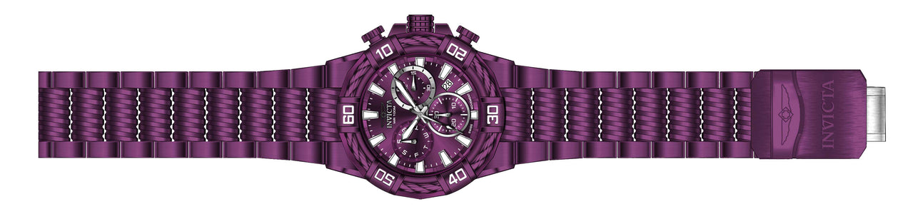 INVICTA Bolt Men 51mm Stainless Steel Purple Purple dial Z60 Quartz , Band Material: Stainless Steel, Band Tone: Purple, Band Size [mm]: 30, Band Length [mm]: 190, Buckle Type: Fold over safety , Crown Type : Push, Case Material : Stainless Steel, Case Tone : Purple, Case Size (mm) : 51, Case Back : Solid, Material of Hands : Metal, Color of Hands : Silver, Crystal Type : Flame Fusion, Bezel Material : Stainless Steel,Cable, Dial Material : Metal, Dial Color : Purple, Dial Pattern : Sun-ray Finish .Purchasing these parts and having a non-authorized repair center open your watch voids all manufacturing warranties. Invicta cannot guarantee the quality standards of an altered timepiece, the standard 3-year limited warranty on Invicta timepieces shall be invalid if the timepiece is serviced at any time by an unauthorized repair center. This includes battery replacements, which must be done at an Invicta authorized repair center in order to maintain the eligibility of the warranty. Please follow the link below to learn more about Invicta's warranty.https://cdn.invictawatch.com/www/files/invicta-warranty-2018.pdf