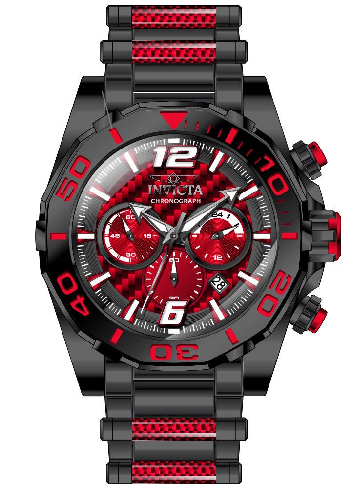 Band Material: Stainless Steel,Carbon Fiber, Band Tone: Black,Red, Band Width: 24MM, Band Length: 190MM, Crown Type: Push, Case Material: Stainless Steel, Case Tone: Black, Case Size [mm]: 48, Case Back: Solid, Material of Hands: Metal, Color of Hands: Silver, Crystal Type: Flame Fusion, Bezel Material: Stainless Steel, Dial Material: Metal,Carbon Fiber, Dial Color: Black,Red .Purchasing these parts and having a non-authorized repair center open your watch voids all manufacturing warranties. Invicta cannot guarantee the quality standards of an altered timepiece, the standard 3-year limited warranty on Invicta timepieces shall be invalid if the timepiece is serviced at any time by an unauthorized repair center. This includes battery replacements, which must be done at an Invicta authorized repair center in order to maintain the eligibility of the warranty. Please follow the link below to learn more about Invicta's warranty.https://cdn.invictawatch.com/www/files/invicta-warranty-2018.pdf