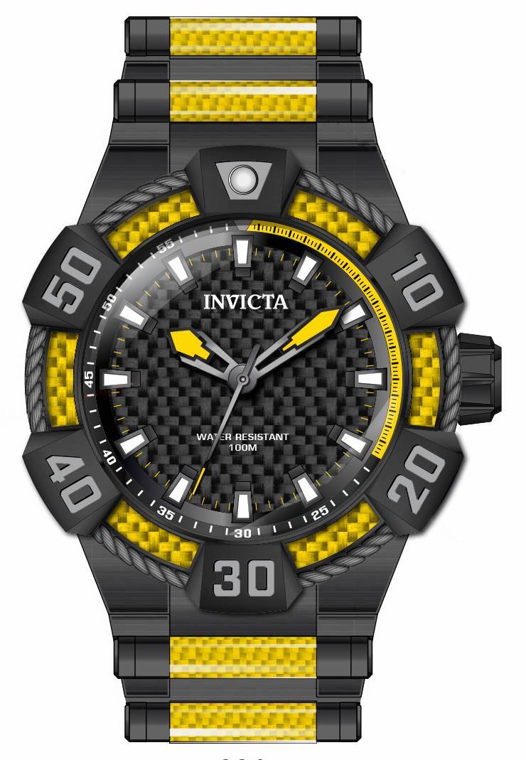Band Material: Stainless Steel,Glass Fiber, Band Tone: Black,Yellow, Band Width: 32MM, Band Length: 190MM, Crown Type: Push, Case Material: Stainless Steel, Case Tone: Black, Case Size [mm]: 52, Case Back: Exhibition, Material of Hands: Metal, Color of Hands: Gunmetal, Crystal Type: Flame Fusion, Bezel Material: Stainless Steel,Glass Fiber,Cable, Dial Material: Carbon Fiber, Dial Color: Black .Purchasing these parts and having a non-authorized repair center open your watch voids all manufacturing warranties. Invicta cannot guarantee the quality standards of an altered timepiece, the standard 3-year limited warranty on Invicta timepieces shall be invalid if the timepiece is serviced at any time by an unauthorized repair center. This includes battery replacements, which must be done at an Invicta authorized repair center in order to maintain the eligibility of the warranty. Please follow the link below to learn more about Invicta's warranty.https://cdn.invictawatch.com/www/files/invicta-warranty-2018.pdf