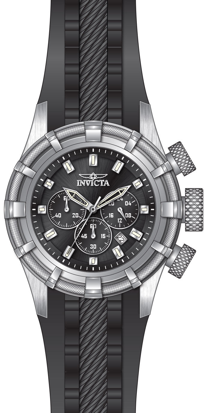 Band Material: Stainless Steel,Silicone, Band Tone: Black, Band Width: 32MM, Band Length: 210MM, Crown Type: Push, Case Material: Stainless Steel, Case Tone: Steel, Case Size [mm]: 50.0, Case Back: Solid, Material of Hands: Metal, Color of Hands: Silver,Luminous, Crystal Type: Mineral, Bezel Material: Stainless Steel, Dial Material: Metal, Dial Color: Black, Dial Pattern: Sun-ray Finish .Purchasing these parts and having a non-authorized repair center open your watch voids all manufacturing warranties. Invicta cannot guarantee the quality standards of an altered timepiece, the standard 3-year limited warranty on Invicta timepieces shall be invalid if the timepiece is serviced at any time by an unauthorized repair center. This includes battery replacements, which must be done at an Invicta authorized repair center in order to maintain the eligibility of the warranty. Please follow the link below to learn more about Invicta's warranty.https://cdn.invictawatch.com/www/files/invicta-warranty-2018.pdf