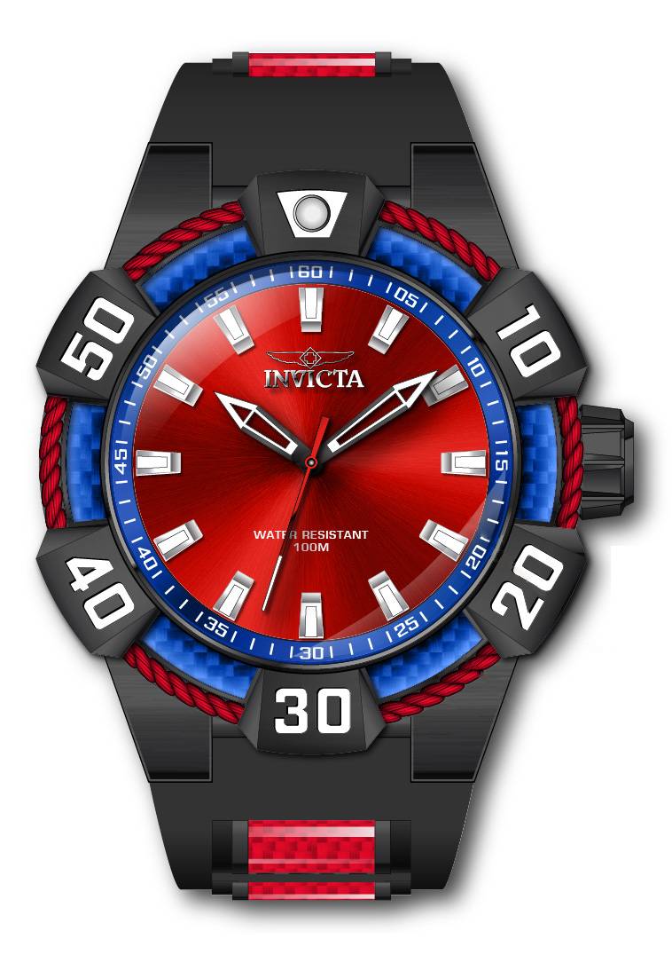 Band Material: Silicone,Glass Fiber, Band Tone: Black,Red, Band Width: 30MM, Band Length: 210MM, Crown Type: Push, Case Material: Stainless Steel, Case Tone: Black, Case Size [mm]: 52, Case Back: Exhibition, Material of Hands: Metal, Color of Hands: Black,Red, Crystal Type: Flame Fusion, Bezel Material: Stainless Steel,Glass Fiber,Cable, Dial Material: Metal, Dial Color: Red .Purchasing these parts and having a non-authorized repair center open your watch voids all manufacturing warranties. Invicta cannot guarantee the quality standards of an altered timepiece, the standard 3-year limited warranty on Invicta timepieces shall be invalid if the timepiece is serviced at any time by an unauthorized repair center. This includes battery replacements, which must be done at an Invicta authorized repair center in order to maintain the eligibility of the warranty. Please follow the link below to learn more about Invicta's warranty.https://cdn.invictawatch.com/www/files/invicta-warranty-2018.pdf