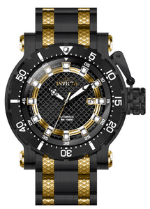 Band Material: Stainless Steel, Band Tone: Gold,Black, Band Width: 26MM, Band Length: 190MM, Crown Type: Push, Case Material: Stainless Steel, Case Tone: Black, Case Size [mm]: 52, Case Back: Exhibition, Material of Hands: Metal, Color of Hands: Black,Gold, Crystal Type: Flame Fusion, Bezel Material: Stainless Steel, Dial Material: Metal, Dial Color: Black,Gold .Purchasing these parts and having a non-authorized repair center open your watch voids all manufacturing warranties. Invicta cannot guarantee the quality standards of an altered timepiece, the standard 3-year limited warranty on Invicta timepieces shall be invalid if the timepiece is serviced at any time by an unauthorized repair center. This includes battery replacements, which must be done at an Invicta authorized repair center in order to maintain the eligibility of the warranty. Please follow the link below to learn more about Invicta's warranty.https://cdn.invictawatch.com/www/files/invicta-warranty-2018.pdf