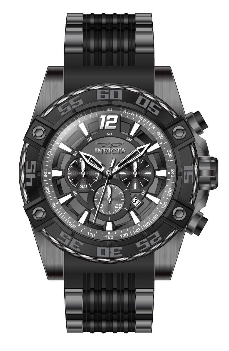 Band Material: Stainless Steel,Silicone, Band Tone: Black,Gunmetal, Band Width: 26MM, Band Length: 210MM, Crown Type: Push, Case Material: Stainless Steel, Case Tone: Gunmetal, Case Size [mm]: 52, Case Back: Solid, Material of Hands: Metal, Color of Hands: Silver, Crystal Type: Flame Fusion, Bezel Material: Stainless Steel,Cable, Dial Material: Metal, Dial Color: Black,Grey, Dial Pattern: None .Purchasing these parts and having a non-authorized repair center open your watch voids all manufacturing warranties. Invicta cannot guarantee the quality standards of an altered timepiece, the standard 3-year limited warranty on Invicta timepieces shall be invalid if the timepiece is serviced at any time by an unauthorized repair center. This includes battery replacements, which must be done at an Invicta authorized repair center in order to maintain the eligibility of the warranty. Please follow the link below to learn more about Invicta's warranty.https://cdn.invictawatch.com/www/files/invicta-warranty-2018.pdf