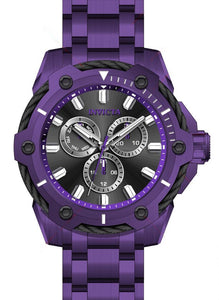 Band Material: Stainless Steel, Band Tone: Purple, Band Width: 24MM, Band Length: 210MM, Crown Type: Push, Case Material: Stainless Steel, Case Tone: Purple, Case Size [mm]: 53, Case Back: Solid, Material of Hands: Metal, Color of Hands: Silver,Purple, Crystal Type: Flame Fusion, Bezel Material: Stainless Steel,Cable, Dial Material: Metal, Dial Color: Black, Dial Pattern: None .Purchasing these parts and having a non-authorized repair center open your watch voids all manufacturing warranties. Invicta cannot guarantee the quality standards of an altered timepiece, the standard 3-year limited warranty on Invicta timepieces shall be invalid if the timepiece is serviced at any time by an unauthorized repair center. This includes battery replacements, which must be done at an Invicta authorized repair center in order to maintain the eligibility of the warranty. Please follow the link below to learn more about Invicta's warranty.https://cdn.invictawatch.com/www/files/invicta-warranty-2018.pdf