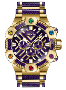 Band Material: Stainless Steel,Glass Fiber, Band Tone: Gold,Purple, Band Width: 32MM, Band Length: 190MM, Crown Type: Push, Case Material: Stainless Steel, Case Tone: Gold, Case Size [mm]: 52, Case Back: Solid, Material of Hands: Metal, Color of Hands: Gold, Crystal Type: Flame Fusion, Bezel Material: Stainless Steel,Glass Fiber,Cable,Crystal, Dial Material: Metal, Dial Color: Gold,Purple .Purchasing these parts and having a non-authorized repair center open your watch voids all manufacturing warranties. Invicta cannot guarantee the quality standards of an altered timepiece, the standard 3-year limited warranty on Invicta timepieces shall be invalid if the timepiece is serviced at any time by an unauthorized repair center. This includes battery replacements, which must be done at an Invicta authorized repair center in order to maintain the eligibility of the warranty. Please follow the link below to learn more about Invicta's warranty.https://cdn.invictawatch.com/www/files/invicta-warranty-2018.pdf