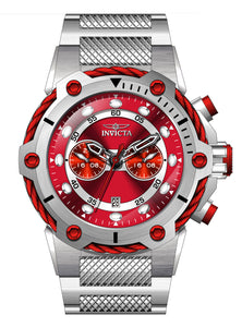 Band Material: Stainless Steel, Band Tone: Steel, Band Width: 30MM, Band Length: 210MM, Crown Type: Push, Case Material: Stainless Steel, Case Tone: Steel, Case Size [mm]: 51.5, Case Back: Solid, Material of Hands: Metal, Color of Hands: Silver,Red, Crystal Type: Flame Fusion, Bezel Material: Stainless Steel,Cable, Dial Material: Metal, Dial Color: Red, Dial Pattern: None .Purchasing these parts and having a non-authorized repair center open your watch voids all manufacturing warranties. Invicta cannot guarantee the quality standards of an altered timepiece, the standard 3-year limited warranty on Invicta timepieces shall be invalid if the timepiece is serviced at any time by an unauthorized repair center. This includes battery replacements, which must be done at an Invicta authorized repair center in order to maintain the eligibility of the warranty. Please follow the link below to learn more about Invicta's warranty.https://cdn.invictawatch.com/www/files/invicta-warranty-2018.pdf