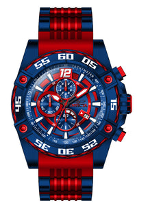 Band Material: Stainless Steel,Silicone, Band Tone: Blue,Red, Band Width: 26MM, Band Length: 200MM, Crown Type: Push, Case Material: Stainless Steel, Case Tone: Blue, Case Size [mm]: 52, Case Back: Solid, Material of Hands: Metal, Color of Hands: Red,Black lacquer, Crystal Type: Flame Fusion, Bezel Material: Stainless Steel,Cable, Dial Material: Metal, Dial Color: Blue,Red, Dial Pattern: Sun-ray Finish .Purchasing these parts and having a non-authorized repair center open your watch voids all manufacturing warranties. Invicta cannot guarantee the quality standards of an altered timepiece, the standard 3-year limited warranty on Invicta timepieces shall be invalid if the timepiece is serviced at any time by an unauthorized repair center. This includes battery replacements, which must be done at an Invicta authorized repair center in order to maintain the eligibility of the warranty. Please follow the link below to learn more about Invicta's warranty.https://cdn.invictawatch.com/www/files/invicta-warranty-2018.pdf