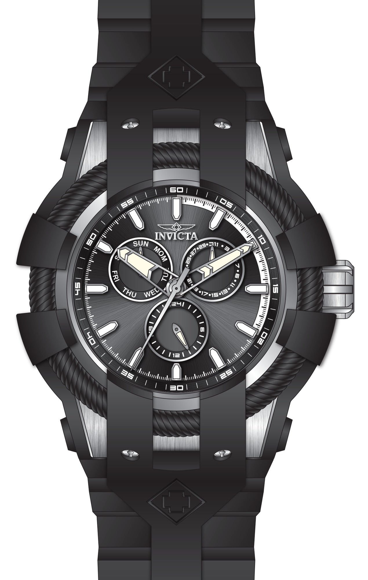 Band Material: Silicone, Band Tone: Black, Band Width: 32MM, Band Length: 210MM, Crown Type: Push, Case Material: Stainless Steel,Silicone, Case Tone: Black,Steel, Case Size [mm]: 50, Case Back: Solid screwed, Material of Hands: Metal, Color of Hands: Silver,Luminous, Crystal Type: Mineral, Bezel Material: Stainless Steel, Dial Material: Metal, Dial Color: Black, Dial Pattern: Sun-ray Finish .Purchasing these parts and having a non-authorized repair center open your watch voids all manufacturing warranties. Invicta cannot guarantee the quality standards of an altered timepiece, the standard 3-year limited warranty on Invicta timepieces shall be invalid if the timepiece is serviced at any time by an unauthorized repair center. This includes battery replacements, which must be done at an Invicta authorized repair center in order to maintain the eligibility of the warranty. Please follow the link below to learn more about Invicta's warranty.https://cdn.invictawatch.com/www/files/invicta-warranty-2018.pdf