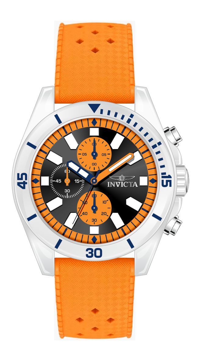 Band Material: Silicone, Band Tone: Orange, Band Width: 22MM, Band Length: 226MM, Crown Type: Push, Case Material: Ceramic, Case Tone: White, Case Size [mm]: 44.5, Crystal Type: Flame Fusion, Dial Material: Brass, Dial Color: Black .Purchasing these parts and having a non-authorized repair center open your watch voids all manufacturing warranties. Invicta cannot guarantee the quality standards of an altered timepiece, the standard 3-year limited warranty on Invicta timepieces shall be invalid if the timepiece is serviced at any time by an unauthorized repair center. This includes battery replacements, which must be done at an Invicta authorized repair center in order to maintain the eligibility of the warranty. Please follow the link below to learn more about Invicta's warranty.https://cdn.invictawatch.com/www/files/invicta-warranty-2018.pdf