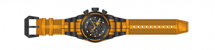 Band for Invicta Character Collection 25002, Band Material: Silicone, Stainless Steel, Band Color: Black, Orange, Band Size (in mm): 36.8, Band Length (in mm): 210, Buckle Type: Regular, Clasp Type: Regular. Please note that bands do not ship with spring bars or T bars. If you need these parts, please add them to your cart with the corresponding part sku.