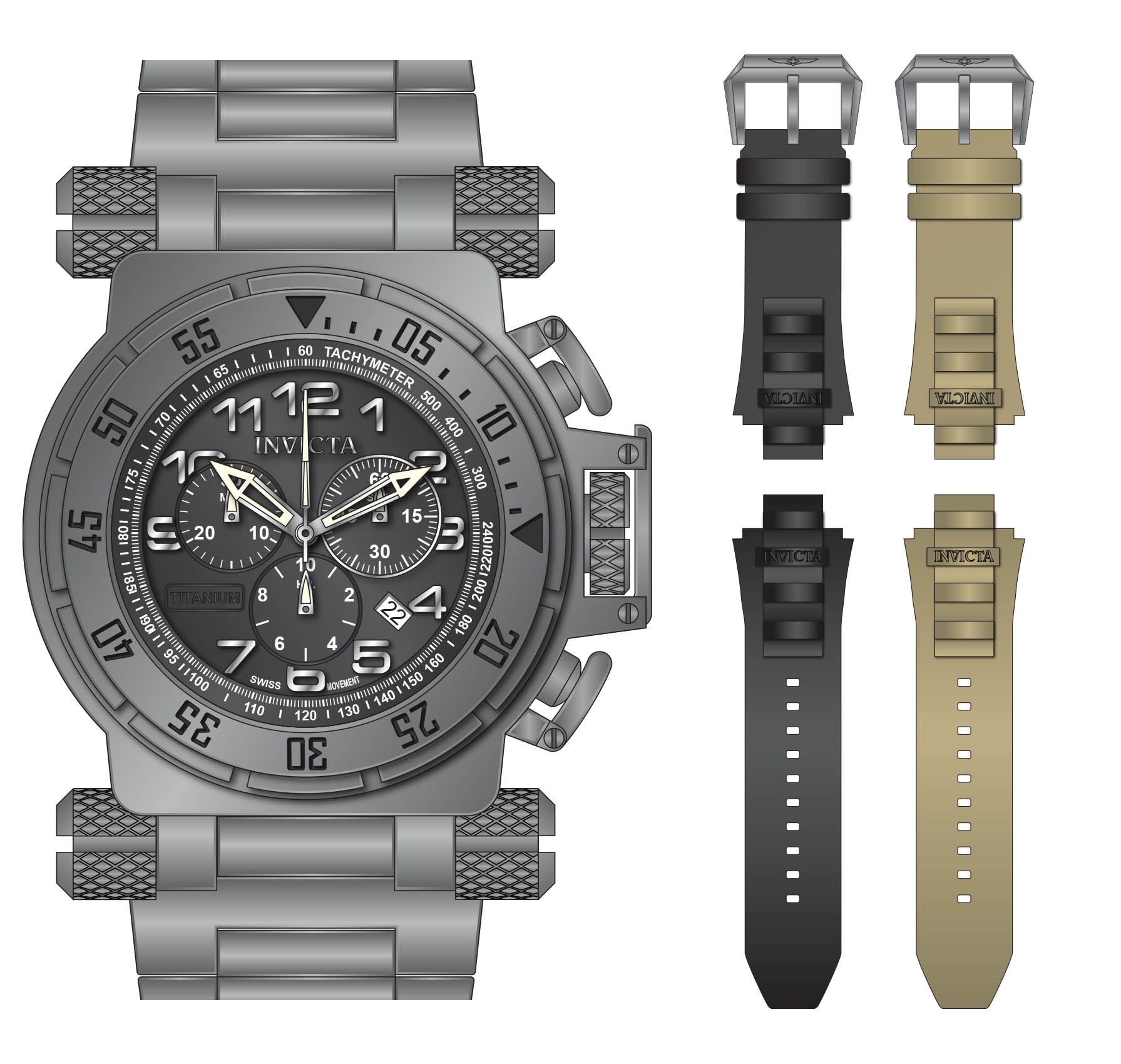 Band Material: Titanium,Silicone, Band Tone: Black,Titanium,Beige, Band Size [mm]: 34.5, Band Length [mm]: 210, Buckle Type: Fold over safety . Please note that bands do not ship with spring bars or T bars. If you need these parts, please add them to your cart with the corresponding part sku.