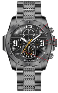 INVICTA Coalition Forces Men 42mm Stainless Steel Gunmetal Black dial VD56 Quartz , Band Material: Stainless Steel, Band Tone: Gunmetal, Band Size [mm]: 22, Band Length [mm]: 200, Buckle Type: Fold over safety , Crown Type : Push, Case Material : Stainless Steel, Case Tone : Gunmetal, Case Size (mm) : 42, Case Back : Solid, Material of Hands : Metal, Color of Hands : Yellow,Grey, Crystal Type : Flame Fusion, Bezel Material : Stainless Steel, Dial Material : Metal, Dial Color : Black, Dial Pattern : Sun-ray Finish .Purchasing these parts and having a non-authorized repair center open your watch voids all manufacturing warranties. Invicta cannot guarantee the quality standards of an altered timepiece, the standard 3-year limited warranty on Invicta timepieces shall be invalid if the timepiece is serviced at any time by an unauthorized repair center. This includes battery replacements, which must be done at an Invicta authorized repair center in order to maintain the eligibility of the warranty. Please follow the link below to learn more about Invicta's warranty.https://cdn.invictawatch.com/www/files/invicta-warranty-2018.pdf