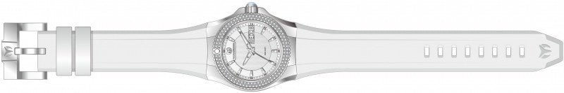 Band Material: Silicone, Band Tone: White, Band Size: 24mm, Band Length: 205mm, Clasp Type: Regular, Clasp Tone: Stainless Steel Please note that bands do not ship with spring bars or T bars. If you need these parts, please add them to your cart with the corresponding part sku.