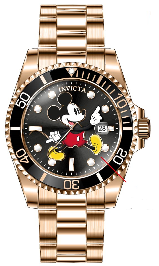 INVICTA Disney Limited Edition Men 40mm Stainless Steel Rose Gold Black+Red+Yellow dial PC32 Quartz , Band Material: Stainless Steel, Band Tone: Rose Gold, Band Size [mm]: 20, Band Length [mm]: 200, Buckle Type: Fold over safety , Crown Type : Push, Case Material : Stainless Steel, Case Tone : Rose Gold, Case Size (mm) : 40, Case Back : Solid, Material of Hands : Metal, Color of Hands : Rose Gold, Crystal Type : Flame Fusion, Bezel Material : Stainless Steel, Dial Material : Metal, Dial Color : Black,Red,Yellow, Dial Pattern : Sun-ray Finish .Purchasing these parts and having a non-authorized repair center open your watch voids all manufacturing warranties. Invicta cannot guarantee the quality standards of an altered timepiece, the standard 3-year limited warranty on Invicta timepieces shall be invalid if the timepiece is serviced at any time by an unauthorized repair center. This includes battery replacements, which must be done at an Invicta authorized repair center in order to maintain the eligibility of the warranty. Please follow the link below to learn more about Invicta's warranty.https://cdn.invictawatch.com/www/files/invicta-warranty-2018.pdf